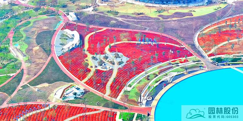 位于項目中心的天空花湖占地面積約27萬平方米,以水環(huán)、外環(huán)及花瓣環(huán)作為構(gòu)成花海的主要結(jié)構(gòu)體系,溪水環(huán)繞花海外圍形成花溪景觀。水環(huán):即天空之鏡,由一片圓形淺水水面作為花海的核心區(qū)域,天水一色,行人在其上猶如在大型的鏡面游走?;ò戥h(huán):作為花海的主要元素“花瓣”,以有“英雄花”之稱的火星花作為主要片植品種,同時采用多種觀賞性花卉,如紫絨鼠尾草、矮生馬鞭草、郁金香、三角梅、粉黛亂子草等花帶打造充滿活力的花海景觀。外環(huán):圍繞“飄落的花瓣”設計主題甄選花卉品種,采用相同花期的紅粉色為主的多年生花卉片植方式,渲染烘托中心花海的熱烈氣氛,以綠色草坪作為襯托花海的底色,引導游人近距離打卡觀賞。
