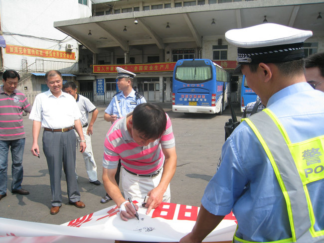 9月4日,市客運(yùn)分公司與交警支隊(duì)二大隊(duì)在安慶汽車站停車場內(nèi)開展“文明交通我承諾,文明交通我參與”駕駛員簽名活動。活動首先由交警支隊(duì)二大隊(duì)二中隊(duì)楊指導(dǎo)員宣傳5種易發(fā)生道路交通事故的不良及違法駕駛行為,楊指要求駕駛員駕駛車輛做到:不超員、不超速、不疲勞駕駛、不酒后駕駛、不無證駕駛,做文明禮讓安全行車的文明駕駛員;隨后進(jìn)行了駕駛員簽名,市客運(yùn)分公司110名未當(dāng)班的駕駛員參加了本次簽名活動。