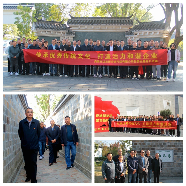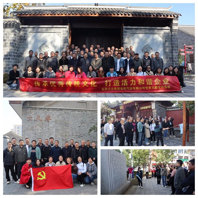 為深入貫徹習近平總書記考察安徽時的重要講話精神,進一步弘揚中華優(yōu)秀傳統(tǒng)文化,加強精神文明建設,提升黨員干部的崇德尚禮品質,安慶公司黨委于11月7日至8日,精心策劃并組織了以“傳承文化精髓,打造和諧企業(yè)新篇章”為主題的黨日活動。此次活動由公司黨委主導,桐城分公司黨支部具體承辦,市客運分公司黨支部積極參與協辦,實現了全司黨員干部的廣泛參與。